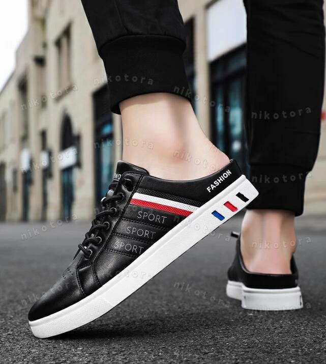 スニーカーサンダル PUレザー サボ メンズ靴 スニーカー 早い者勝ち 黒色 白灰色 白赤色 39\u003d24.5cm 40\u003d25.0cm 41\u003d25.5cm 42\u003d26.0cm 43\u003d26.5cm 44\u003d27.0cm