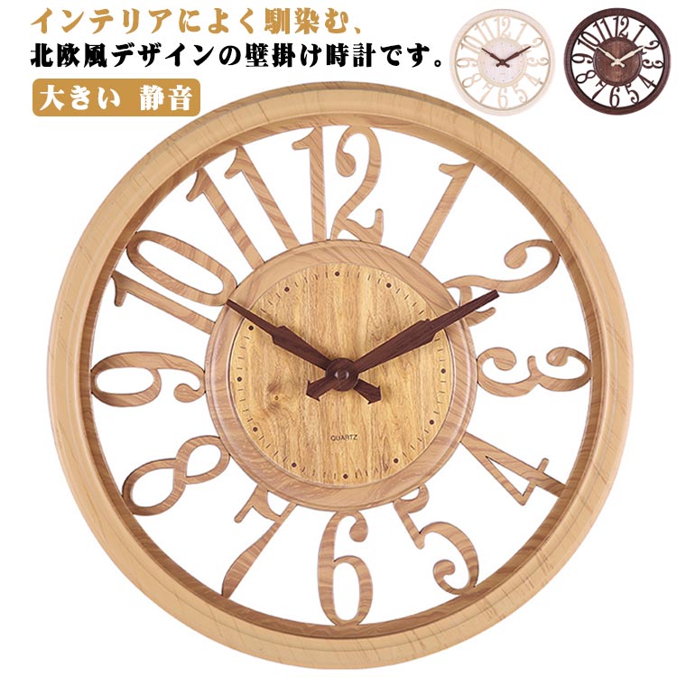 壁掛け時計 お洒落 北欧風 掛け時計 アイボリー ナチュラル ブラウン
