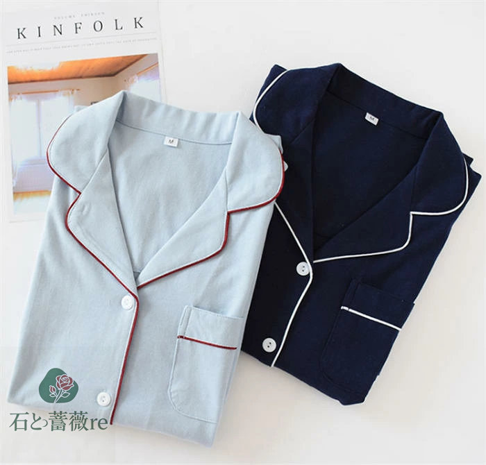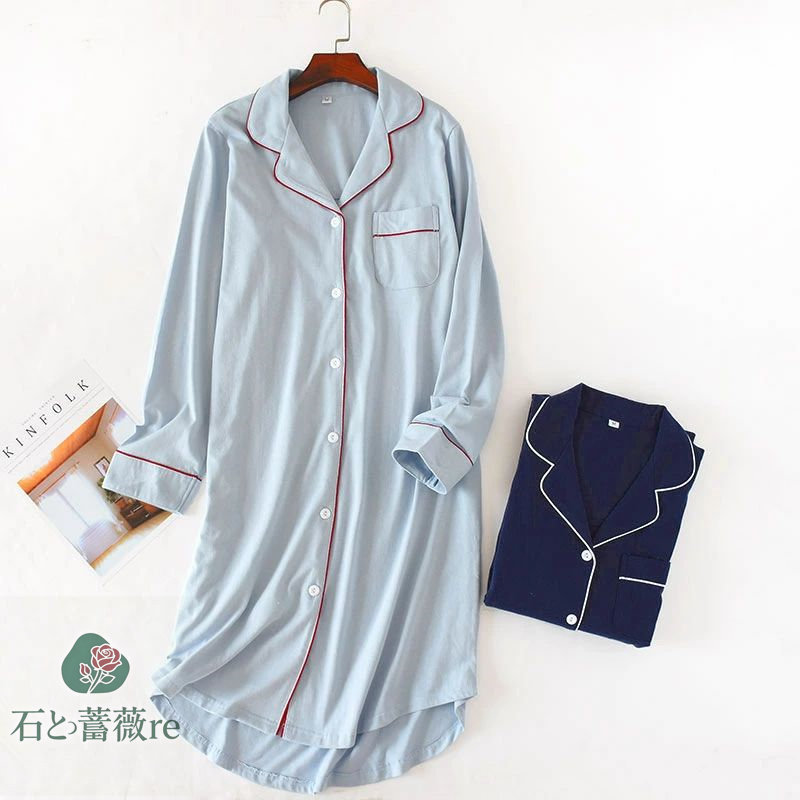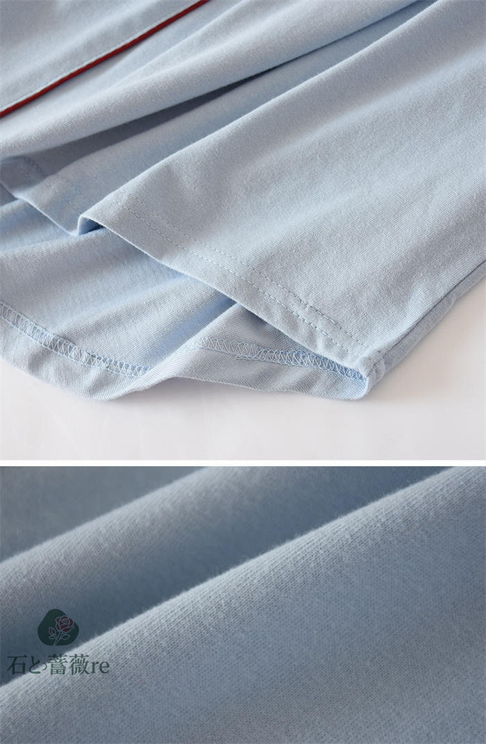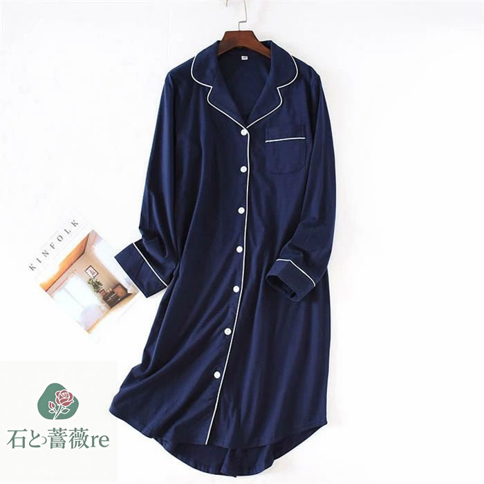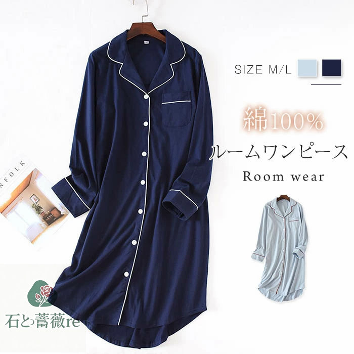 綿100% ルームワンピース レディー ブルー ネイビー M L