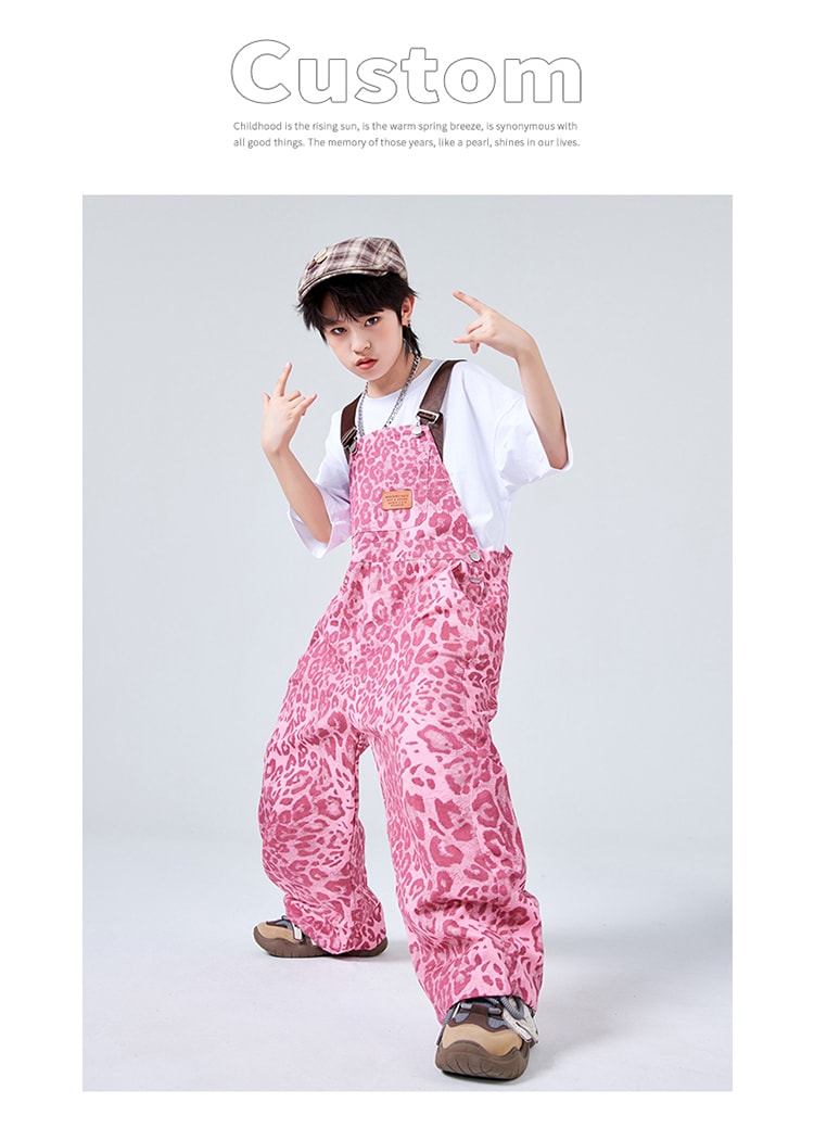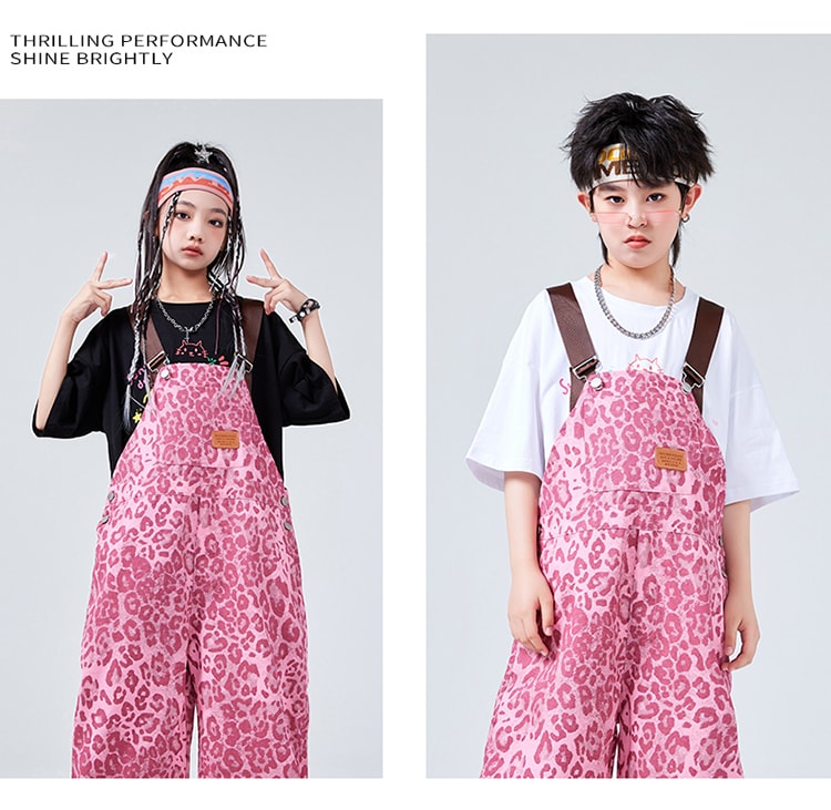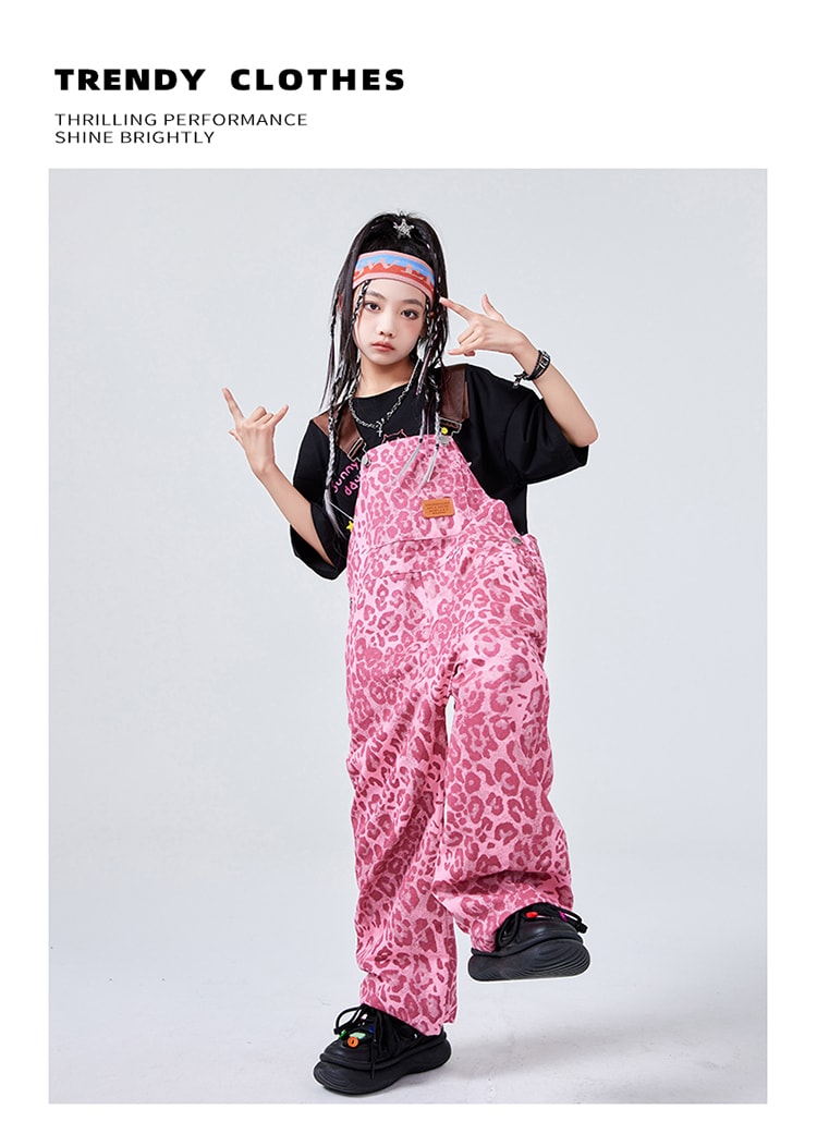 ダンス衣装 サロペット ヒョウ柄 ピン キッズ スーツ カジュアルセットアップ カジュアルパンツセット 新登場! 110cm 120cm 130cm 140cm 150cm 160cm 170cm 180cm 白tシャツ単品 黒tシャツ単品 サロペット単品 白2点セット 黒2点セット