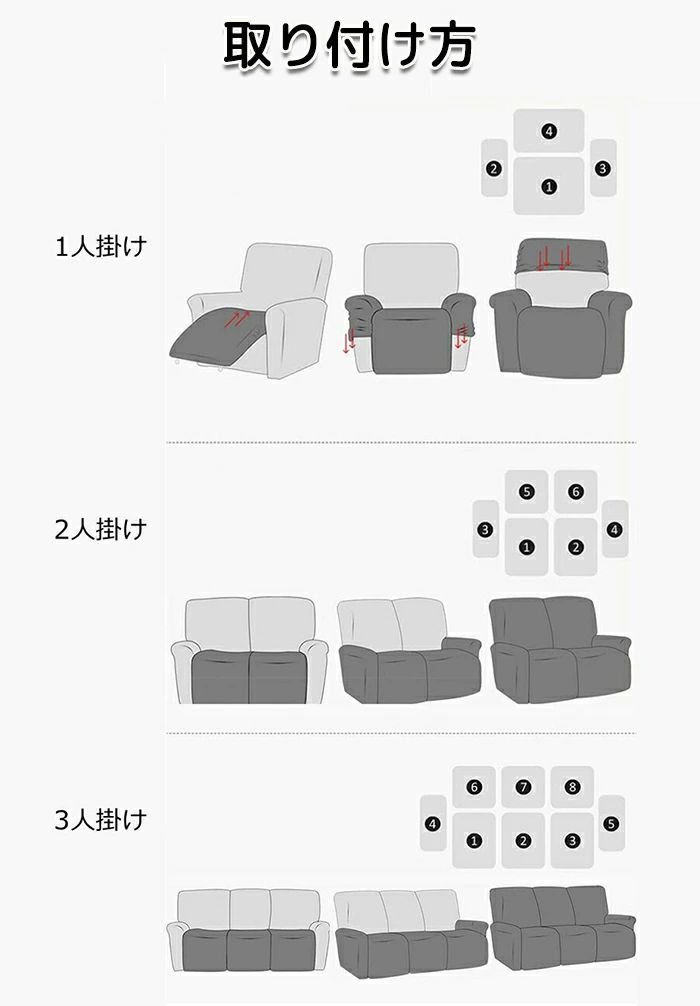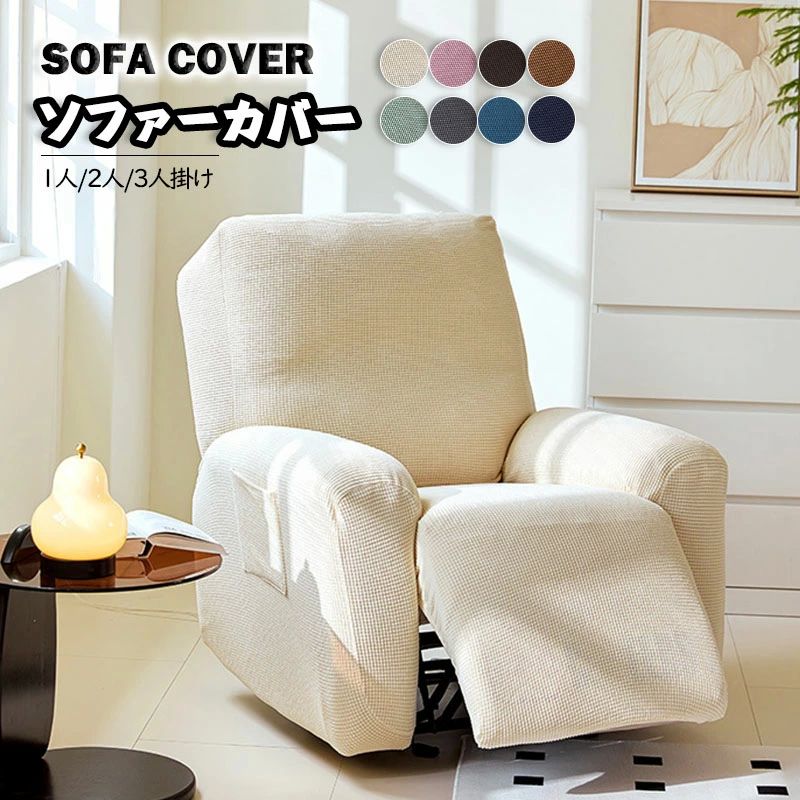 伸び ソファーカバー 電動 リクライニ ベージュ ネイビー マリンブルー ダークグレー グリーン コーヒー ブラウン ピンク 1人掛け 2人掛け 3人掛け