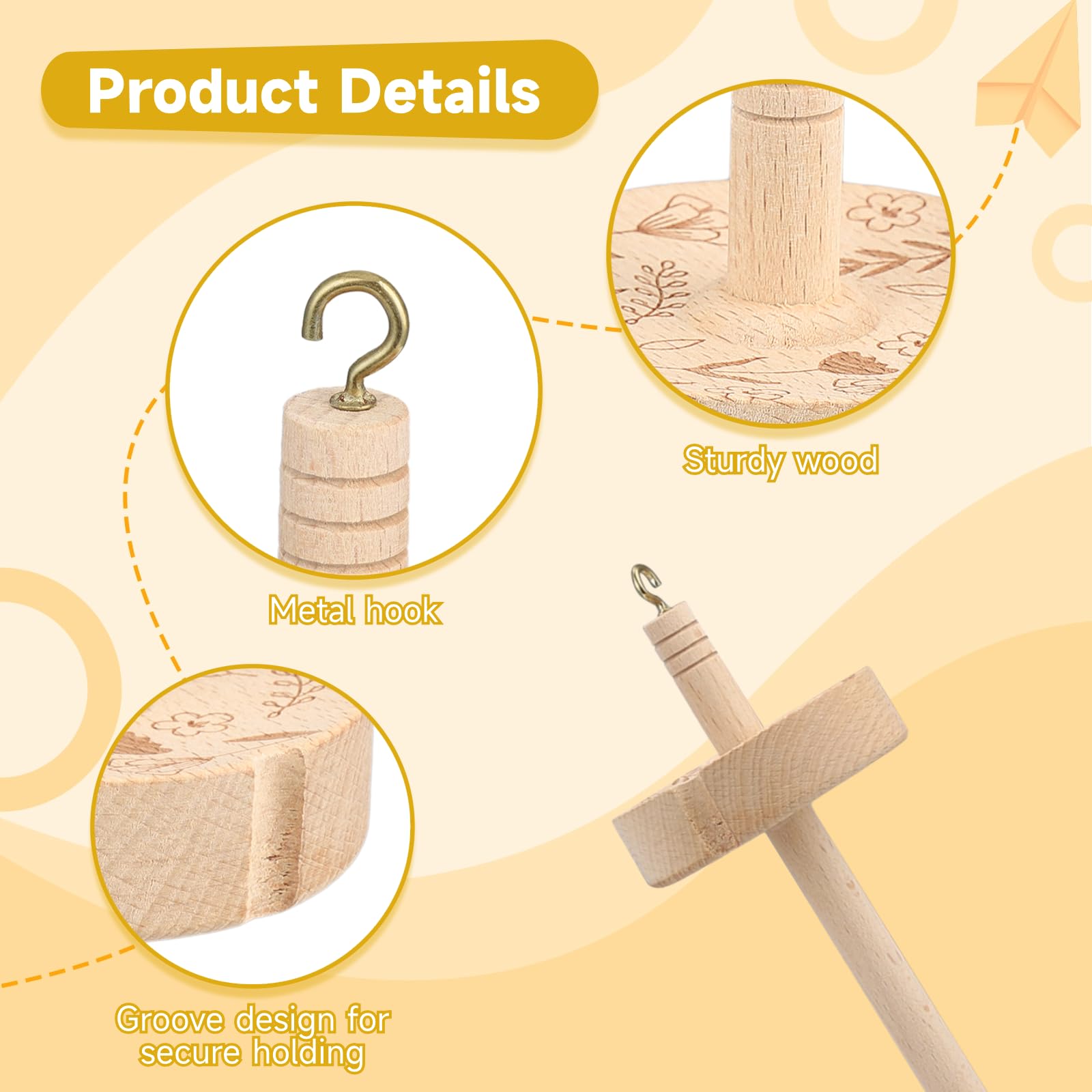 ドロップ付き木製ウールカーダー 2個花