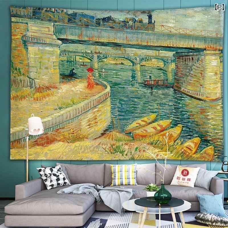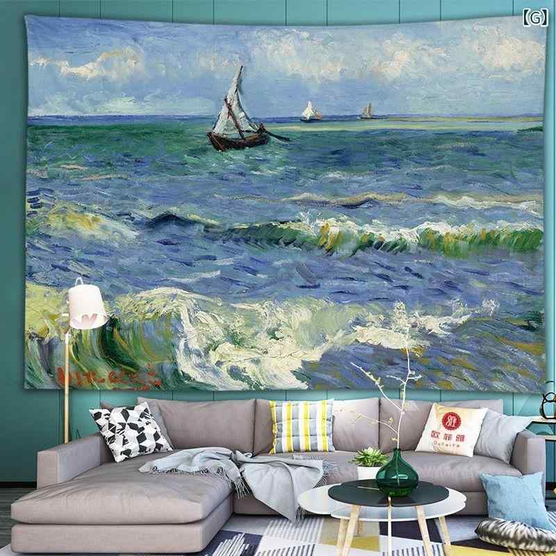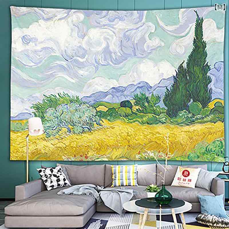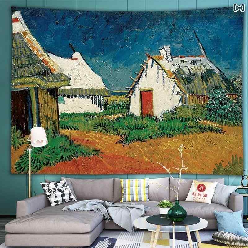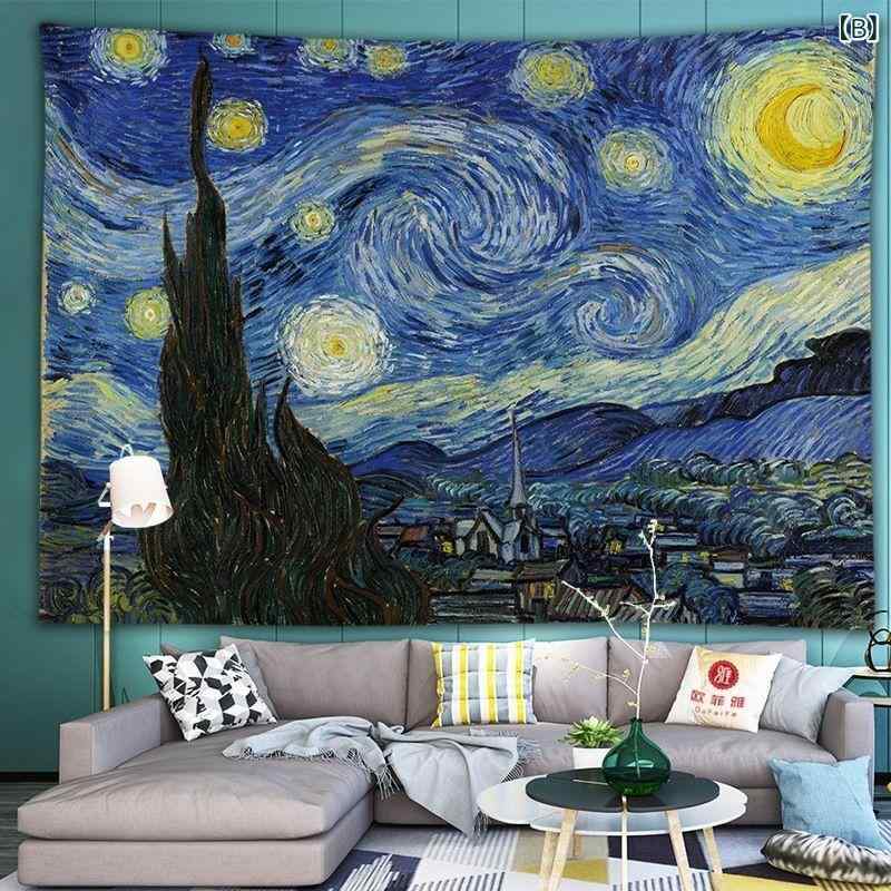 タペストリー リビング 寝室 欧風 壁 A:ローヌ川の星月夜 B:星月夜(セット1) C:聖マリーの小屋 D:ダーゲンセン公園の恋人 E:ホワイトハウスの夜 F:第一歩 G:帆 H:ゴッホの花 I:家 J:家と農夫 K:オリーブの木 L:杏の花 M:糸杉 N:畑 O:海岸の漁船 P:セーヌ川に架かる橋 Q:緑色の麦畑 R:馬車 S:波止場で砂卸す人 T:オーヴェルス 幅95cm高73cm道具 幅95高73道具+3m灯 幅150高120道具 幅150高120道具+6m灯 幅200高150道具 幅200高150道具+6m灯