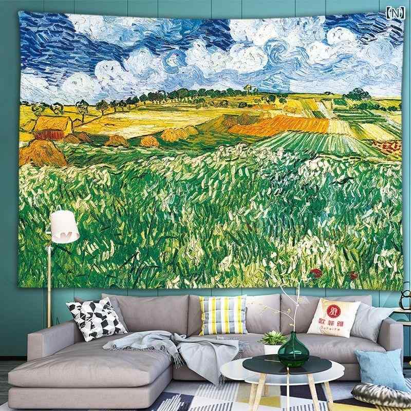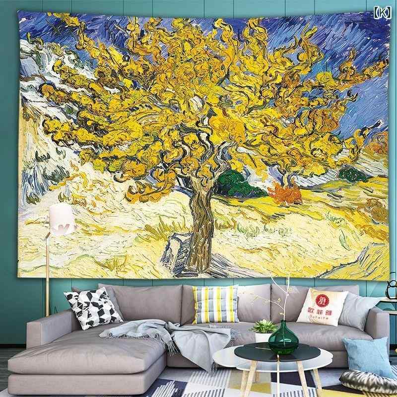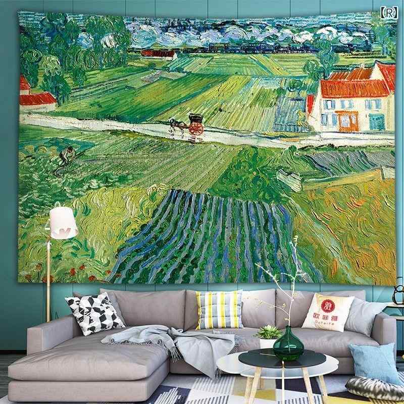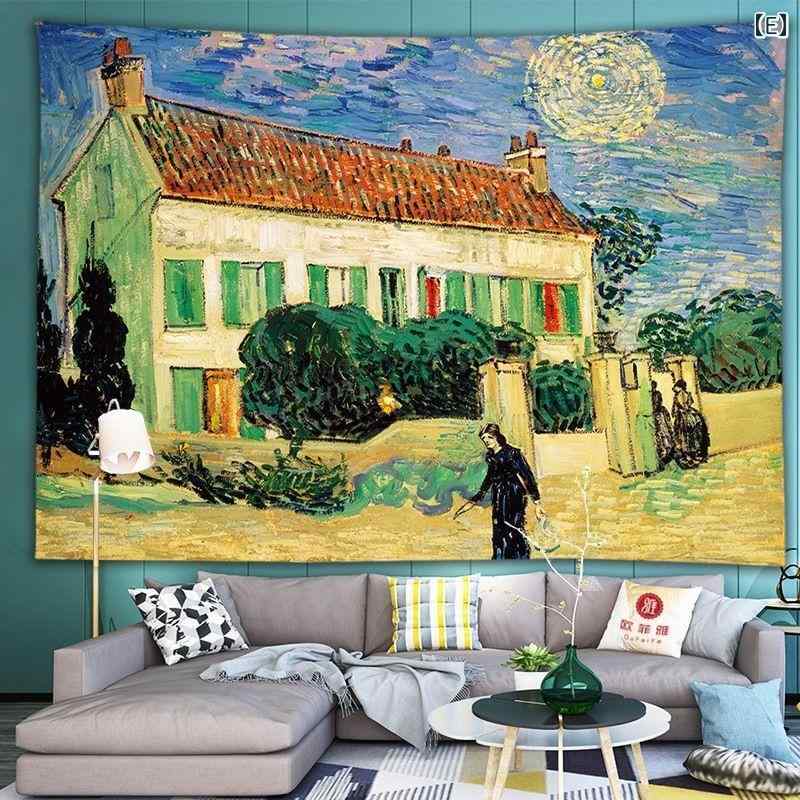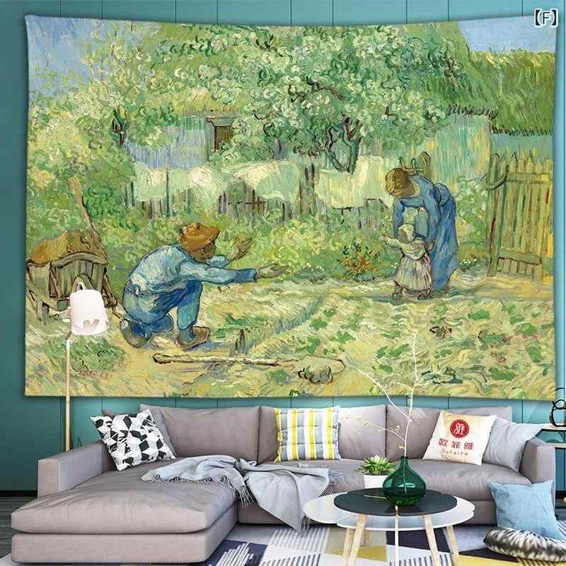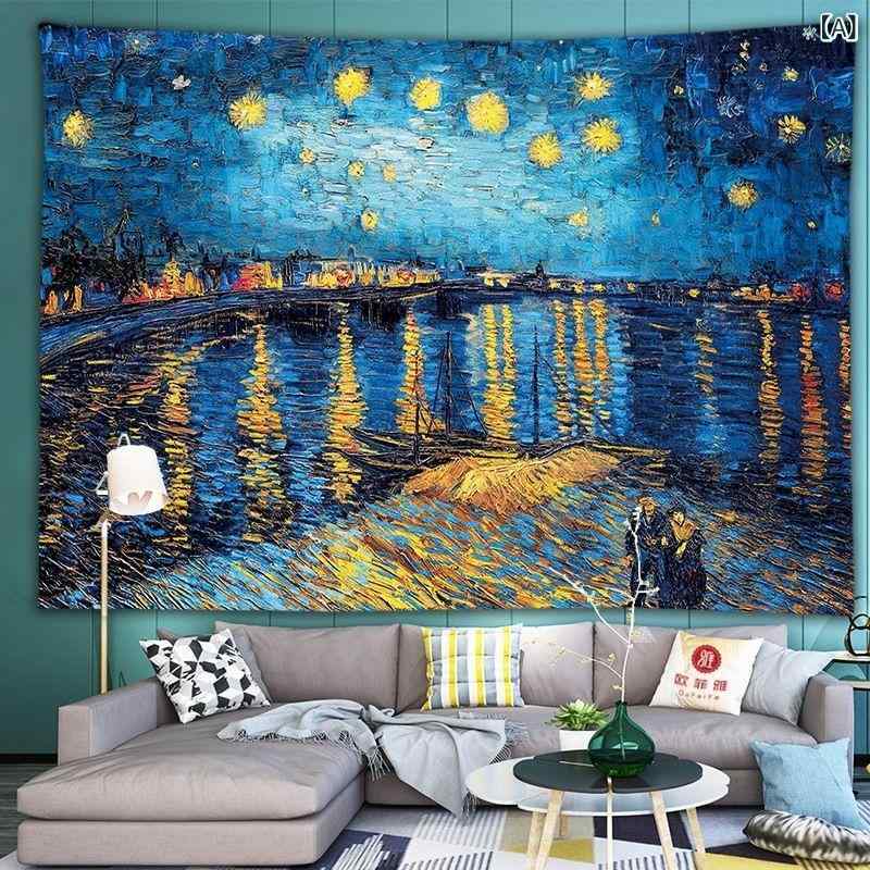 タペストリー リビング 寝室 欧風 壁 A:ローヌ川の星月夜 B:星月夜(セット1) C:聖マリーの小屋 D:ダーゲンセン公園の恋人 E:ホワイトハウスの夜 F:第一歩 G:帆 H:ゴッホの花 I:家 J:家と農夫 K:オリーブの木 L:杏の花 M:糸杉 N:畑 O:海岸の漁船 P:セーヌ川に架かる橋 Q:緑色の麦畑 R:馬車 S:波止場で砂卸す人 T:オーヴェルス 幅95cm高73cm道具 幅95高73道具+3m灯 幅150高120道具 幅150高120道具+6m灯 幅200高150道具 幅200高150道具+6m灯