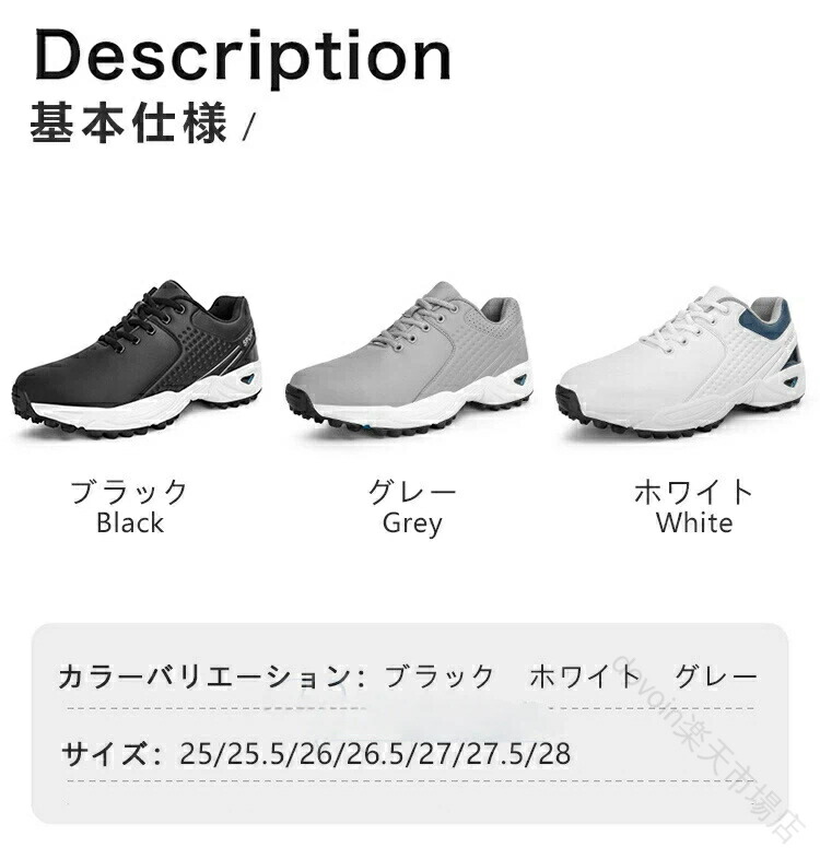 ゴルフシューズ メンズ 快適 軽量 防 ゴルフ シューズ メンズシューズ 人気 ブラック ホワイト グレー (25cm) (25.5cm) (26cm) (26.5cm) (27cm) (27.5cm) (28cm)