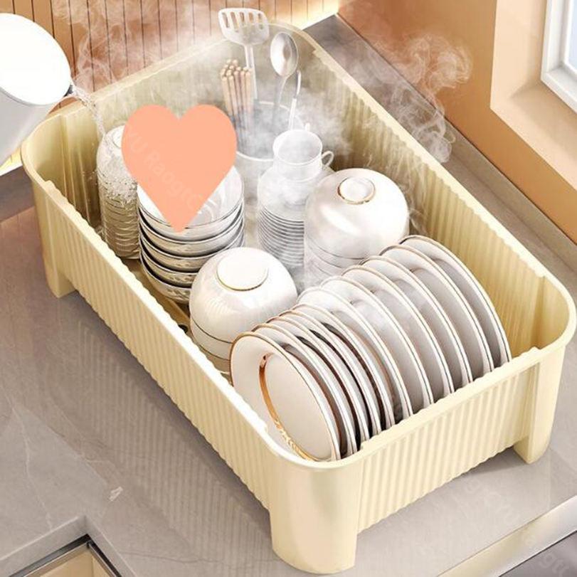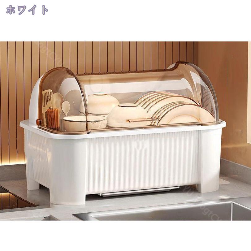 食器棚 キッチン 家事 台所 水切りラック 水切りカゴ シンク トレイ 食器 物置棚 大容量 食器皿 お箸 お皿 食器収納 蓋付き 収納 ケース 透明カバー プラスチック 食器ケース 1段 組 密封性