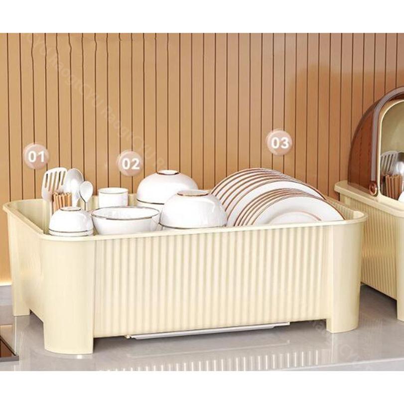 大容量の水切りラックでお皿やコップ、茶碗や箸などをたっぷり収納することができます。大容量ながらコンパクト設計で、一人暮らしから2 - 3人分の食器収納に最適です。蓋付きのデザインでホコリや汚れから守ることができ、清潔な状態で乾燥させることができます。