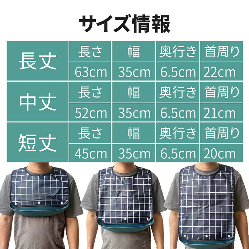 介助エプロン シニア 老人 大人 向け 短 中 長 ベージュ ブルー カーキ グレー