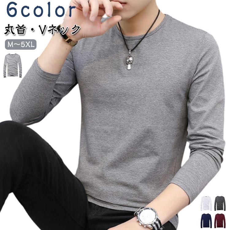 ロンT インナー クルーネック Vネック 長袖 メンズ 大きいサイズ 男性 メンズインナー 丸首 インナーシャツ 肌着 秋冬 春 Tシャツ 無地 長袖Tシャツ シンプル 大人 白 グレー ブラック 黒