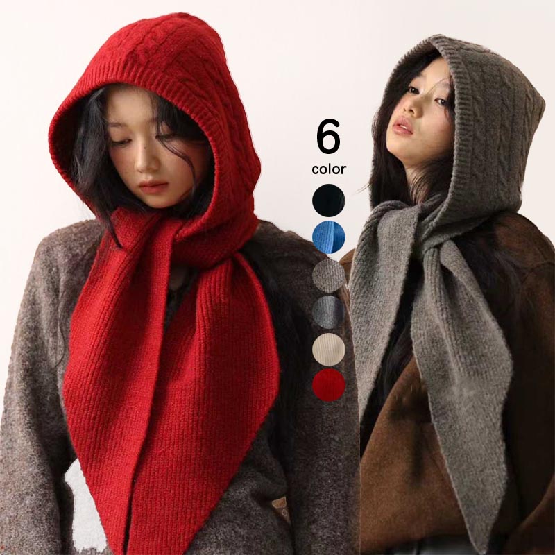 秋冬の寒さ対策に最適なレディースニットフードマフラー 肩掛けタイプでおしゃれに防寒 人気の韓国ファッションで暖かさ抜群