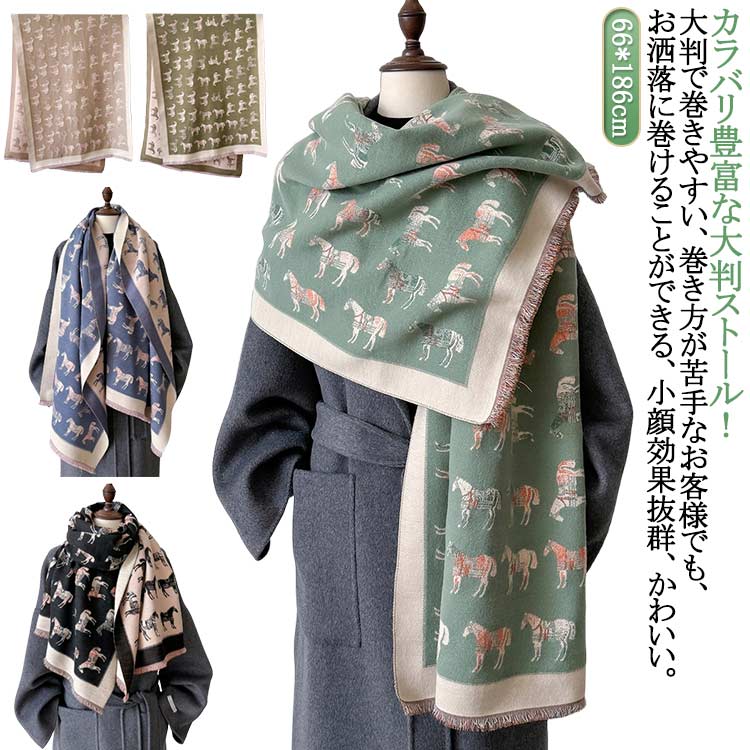 マフラー ストール ショール 大判 厚手 馬柄 カシミヤタッチ スカーフ ホース 大判ストール ホース柄 ブランケット 大判ショール 韓国 膝掛け 秋 馬
