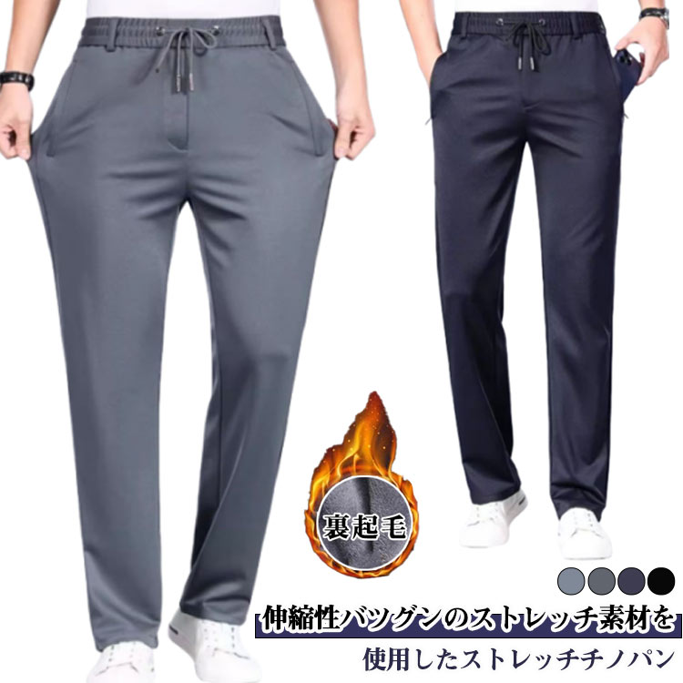 チノパン メンズ 裏起毛 ストレッチ ロングパンツ 秋 冬 防寒 アウトドア 暖かい ウエストゴム 保温 ボトムス