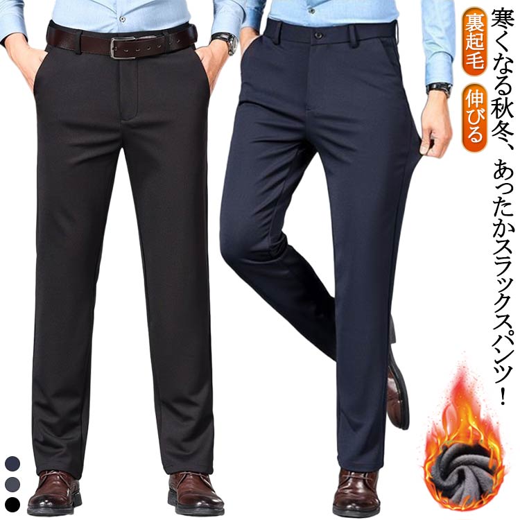 送料無料 裏起毛 スラックス メンズ 秋冬 パンツ 暖かい ストレッチ ストレートパンツ 伸縮性 おしゃれ 暖パン あったか 大きいサイズ
