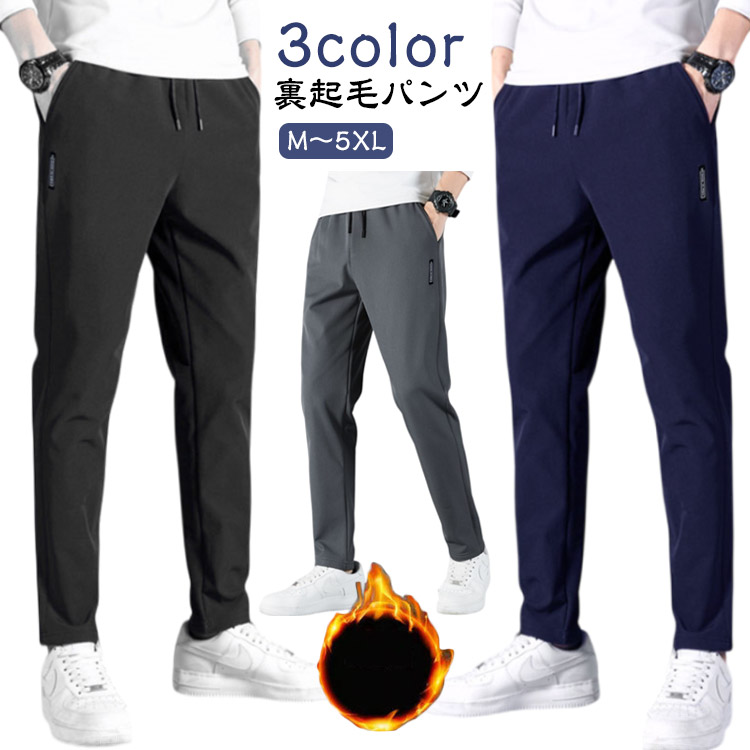 スラックス メンズ 秋冬 ストレッチ素材 スリム 裏起毛 ロングパ