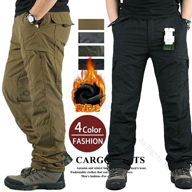 暖パン カーゴパンツ メンズ 裏ボアパンツ 防寒 冬 作業ズボン ミリタリー ワークパンツ 6ポケット 裏起毛 あったか ボトムス イージーパンツ ゴルフ 釣り ゆったり 太め 長ズボン 登山パンツ