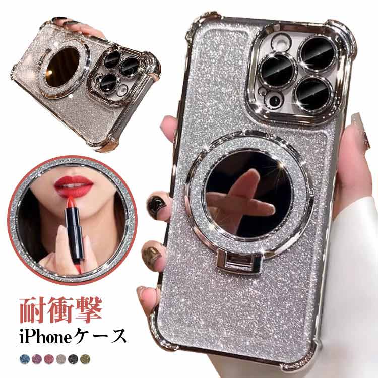 iPhoneケース 鏡付き スマホケース iphone16promax カバー ミラーケース iphone 15 背面手鏡 コンパクトiPhone16plus キラキラ ソフト 耐衝撃 スタ かわいい