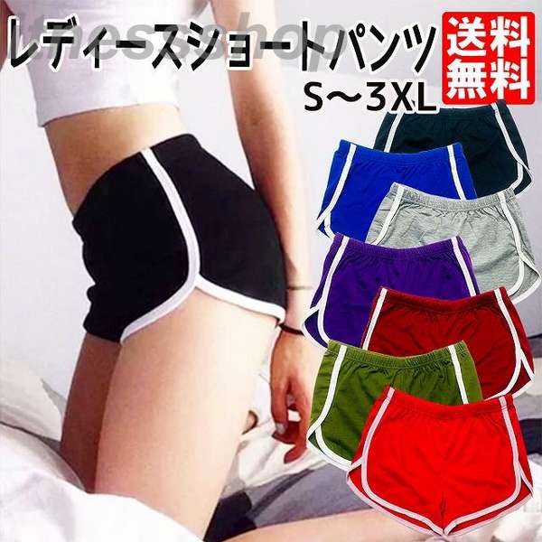 ショートパンツ レディース ボトムス ショート丈 短パン 無地 ライン入り ウエストゴム カジュアル スポーティ スポーツ フィットネス 部屋着