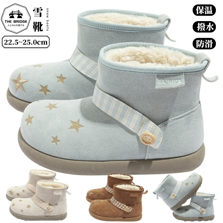 撥水・滑り止めで雪日も安心!ベルクロで履きやすい星柄レディースブーツ!