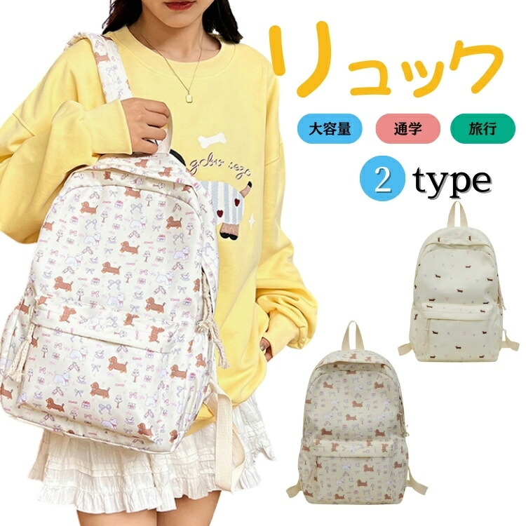 女の子 韓国 人気 大容量 キッズリュック 軽量 可愛い 犬柄 A4 ipad対応 収納 仕切り 通学 旅行 カジュアル リュック ナイロン 女子 高校生 中学生 おしゃれ 遠足 ベージュ デイパック