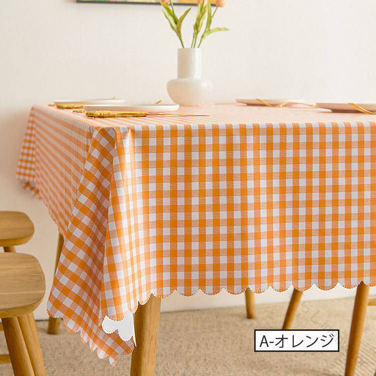 多彩なサイズと形状で選べる防水防油の製テーブルクロス 滑り止め付きで食卓やデスクの汚れ防止に最適なかわいいチェック柄カバー