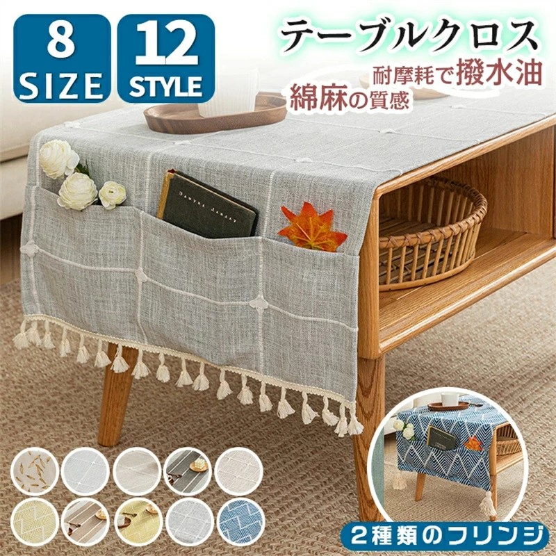 テーブルクロス マルチカバー リネン風 和風 和モダン 北欧 レトロ 綿麻風 おしゃれ 長方形 収納ポケット付き フリンジ ストライプ ライン チェック柄 大きめ 小さめ 撥水 防水 ローテーブ 撥油