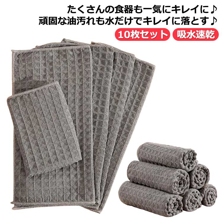 キッチンタオル キッチンクロス 10枚セット 油汚れクロス ふきん 食器 厚手 ワッフル生地 台拭き 吸水 速乾 ティータオル レンジクロス 布巾 油汚れ ハンドタオル 食器拭き 手拭き 専用