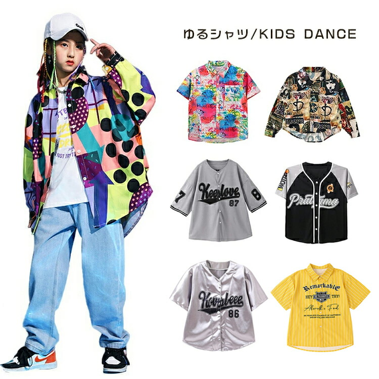 シャツ キッズ ダンス 衣装 ゆるシャツ 派手 子供服 ベースボールシャツ キッズダンス衣装 柄シャツ 男の子 女の子 ヒップホップ 衣装 ファッション ダ