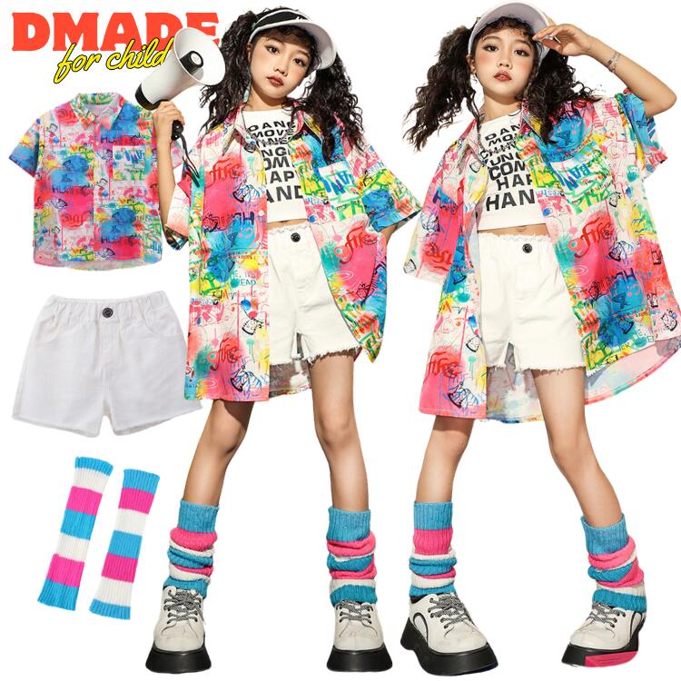 キッズ ダンス衣装 セットアップ 女の子 ピンク シャツ ヒップホップ 単品 レッグウォーマー ショーツ 応援団 hiphop ジャズ ダンスウェア 派手 かっこい 韓国