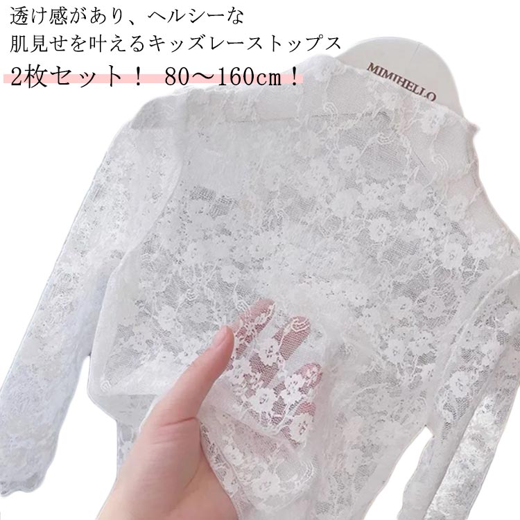 140 80~160cm トップス 2枚セット シースルー チュール ハイネック キッズ レース カットソー シアートップス 長袖 秋 レイヤード 透け感 日焼け止め キレイめ 華やか UVカット