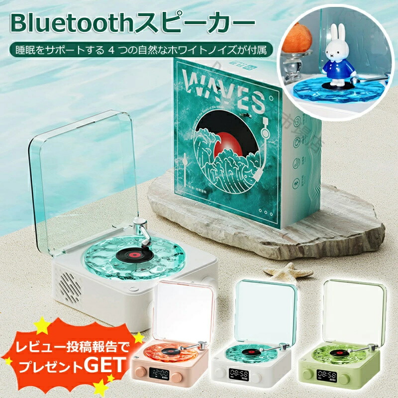 スピーカー bluetooth 海 海のレコードスピーカー 海を聴く レトロ レコード レコードプレーヤー風 可愛い 復刻スピーカー デジタル時計 置き時計 コンパクト ホワイトノイズ ギフ デジタル