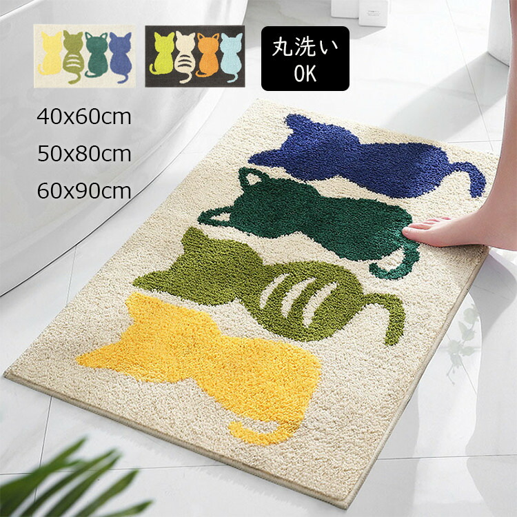 玄関マット 室内 50×80cm 40x60cm 60x90cm おしゃれ 北欧 かわいい 洗える 屋内 滑り止め 小さめ エントランス 猫柄 吸水 ドアマット