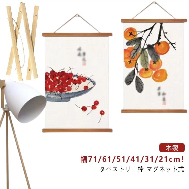 磁石 タペストリー棒 木製 マグネット式 幅71 61 51 41 31 21cm タペストリーハンガー ポスターハンガー ウッドフレーム 手拭い用 リバーシブル 簡単 手 両面