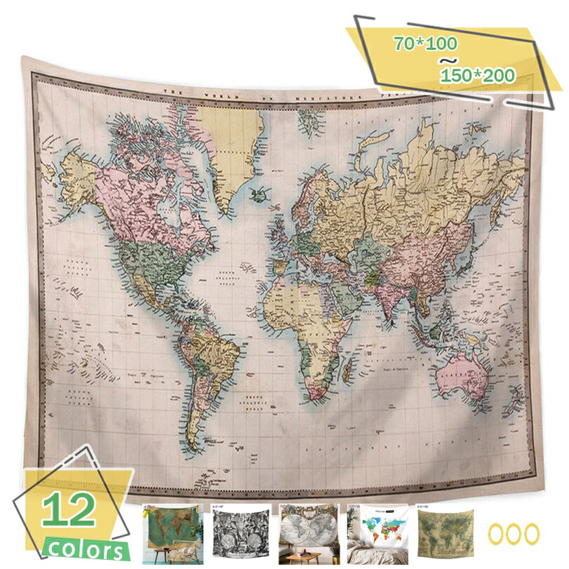 壁掛けタペストリー 世界地図 飾り 背景布 水彩絵 ワールドマップ インテリア おしゃれ 多機能壁掛け 大判 ヴィンテージ風 モダン 布ポスター 簡単 ライブ背景 寝室 部屋 玄関 寮 壁飾り お店
