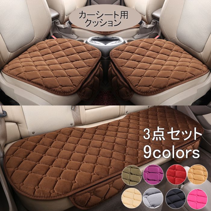 シートクッション ひも付き 車用 シートカバー 3枚セット 車 座布団 防寒 9色 防寒グッズ カーシート カーシートカバー クッション 滑り止め カー用品 車用品 後部 カークッション