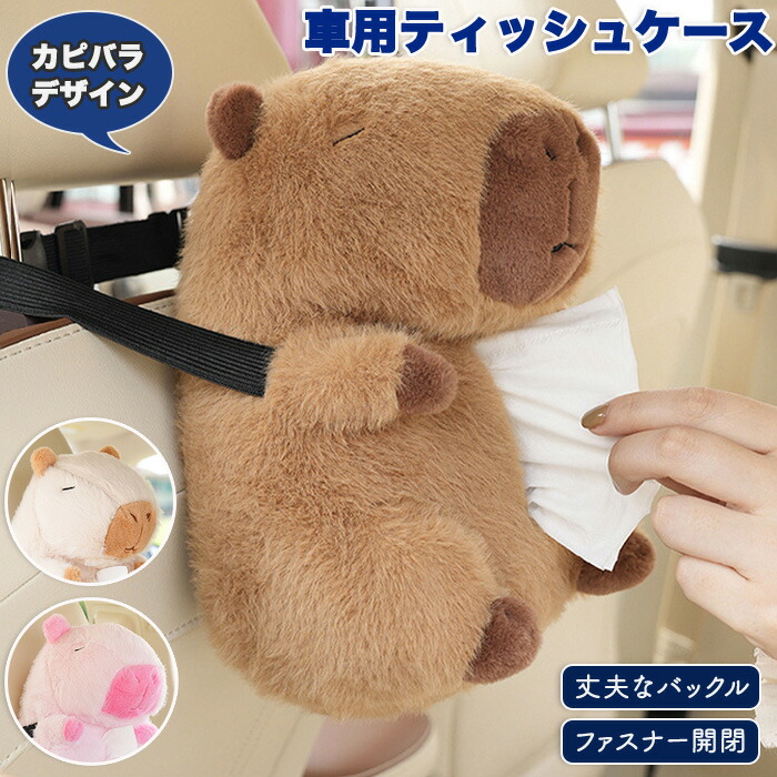 ティッシュケース 車用ティッシュケース 車用 車内 バックル固定 バックル 簡単取付 取付簡単 カピバラ ふわふわ 可愛い ぬいぐるみ おくだけ ファスナー開閉式 家 ティッシュボックス ホル お部屋