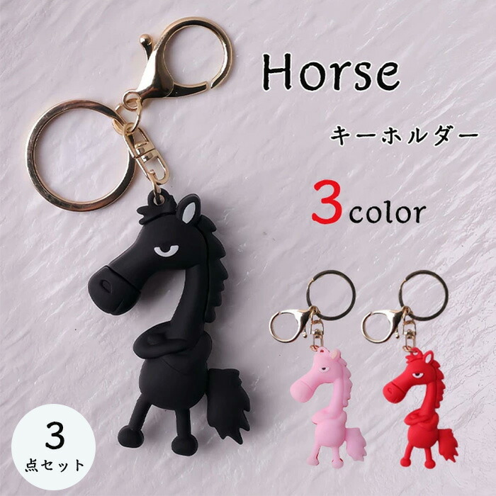キーホルダー 馬 飾り3個 うま 縁起の良い馬 軽量 薄型 小型 おしゃれ かわいい 動物チャーム プレゼント午年贈り物 車の鍵 かぎ 財布 母の日 馬のぬいぐるみ 新年の飾り 鍵 アクセサリー